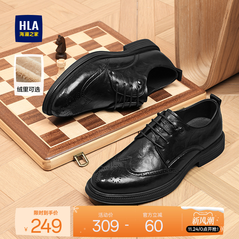 HLA/海澜之家男鞋新款秋冬商务正装布洛克鞋增高加绒结婚新郎皮鞋