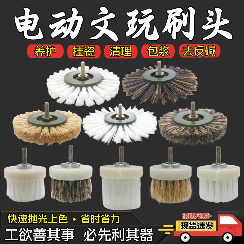 文玩电动刷头加密猪鬃刷金刚菩提核桃抛光刷电磨清理抛光包浆工具
