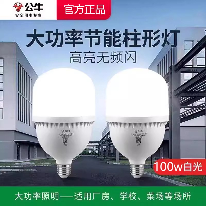 公牛爱眼LED球灯泡E27螺口节能螺旋厂房户外柱形光源30W40W24W50W