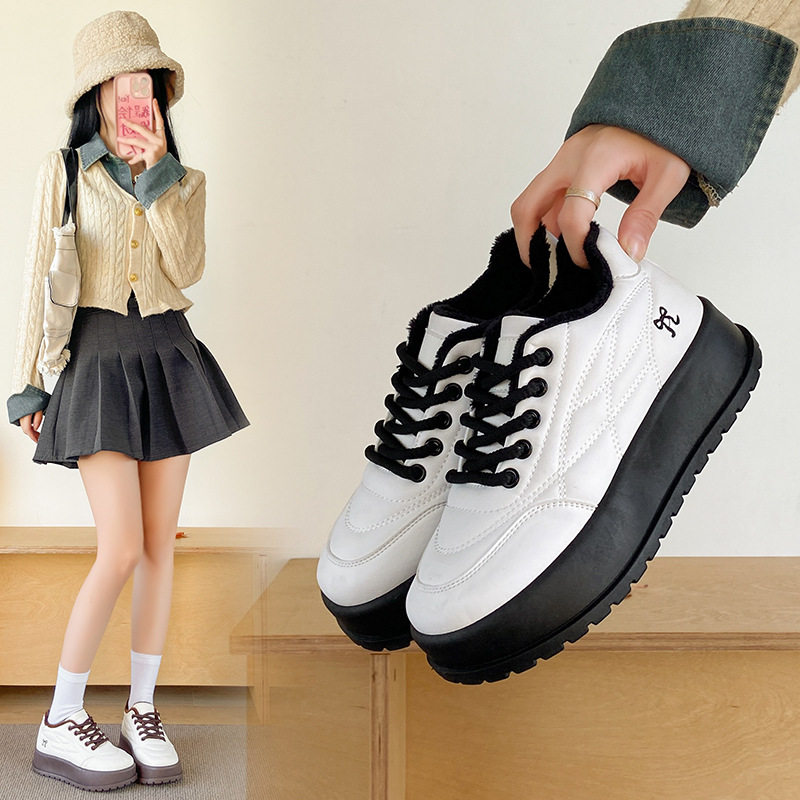 - 厚底小白鞋女 圆头