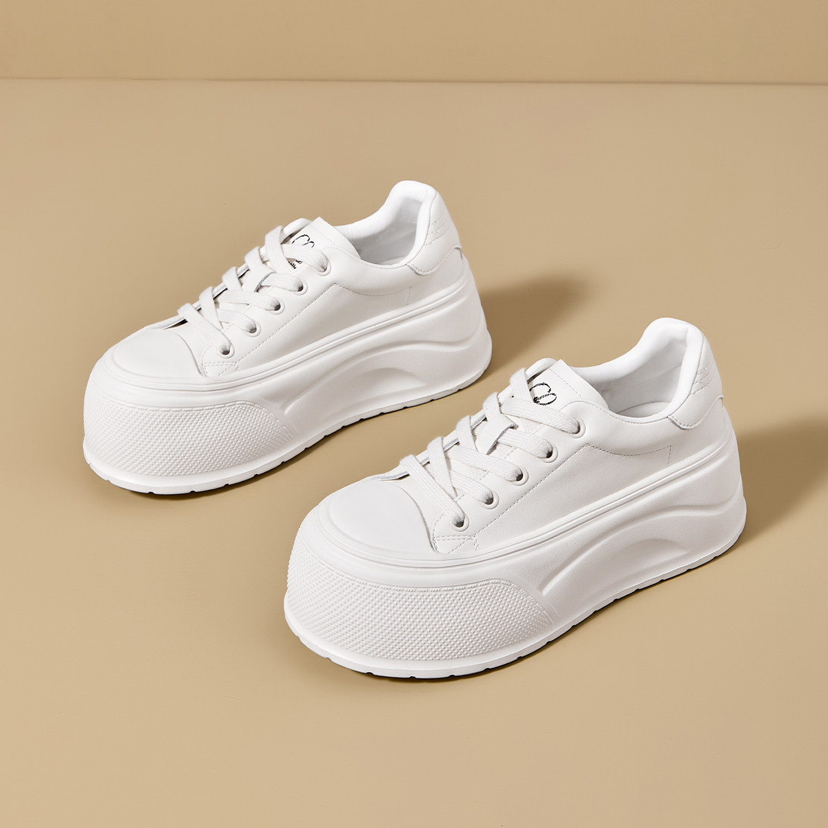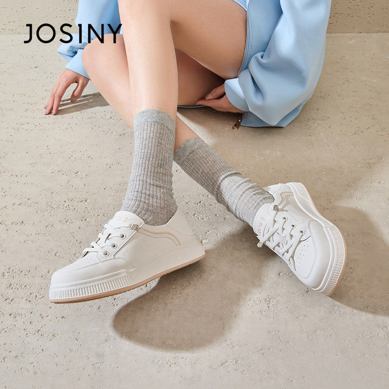 佰诗奴商场同款2026春款厚底小白鞋女冬季百搭系带休闲板鞋增高鞋