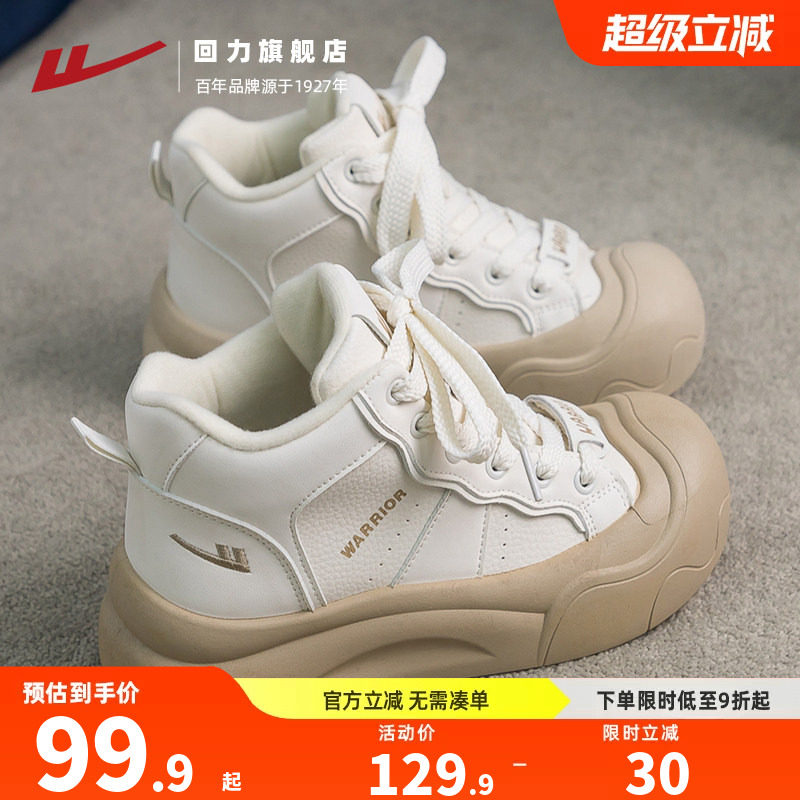 回力加绒高帮小白鞋女冬季保暖百搭爆款厚底棉鞋休闲运动白色板鞋