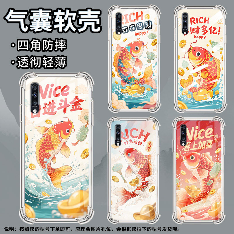 适用三星A9StarLite手机壳三星A8s多财多亿锦鲤三星A9气囊壳三星A9s男女款三星A20时尚商务硅胶防摔保护套