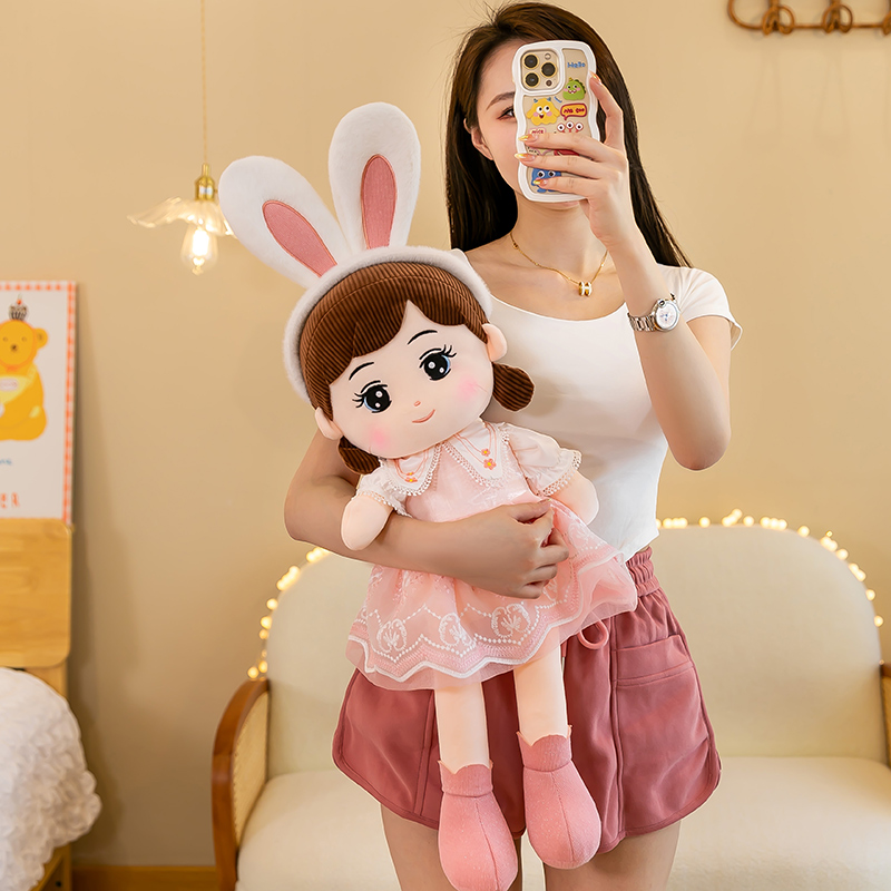 超萌可爱洋娃娃抱枕兔耳朵毛绒玩具女孩玩偶儿童陪睡布娃娃大礼物
