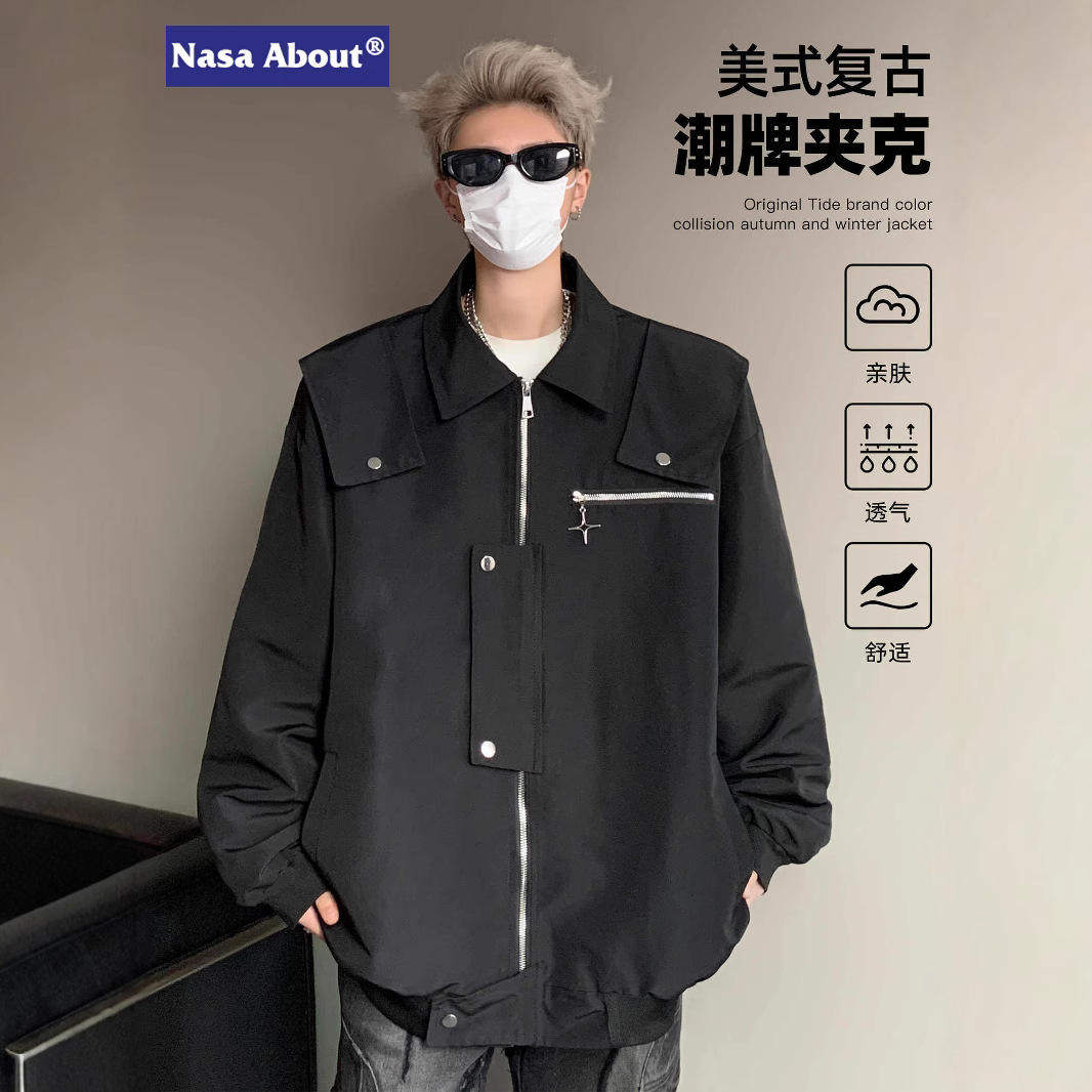 美式复古工装夹克男士春秋季2025新款潮牌高街大码棒球服外套