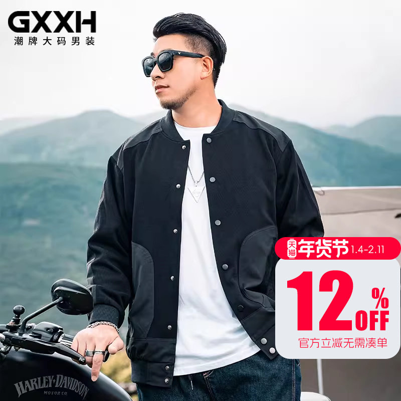 GxxH大码男装 胖子宽松加肥加大码棒球服夹克痞帅国潮外套春秋款