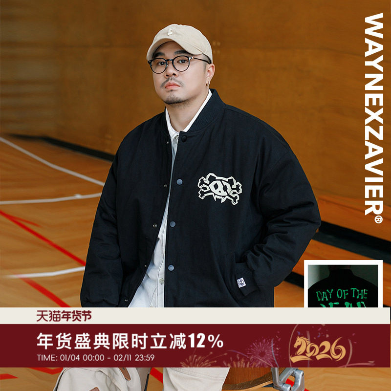 韦恩泽维尔大码棒球服棉衣男宽松街头荧光印花休闲加厚外套8980