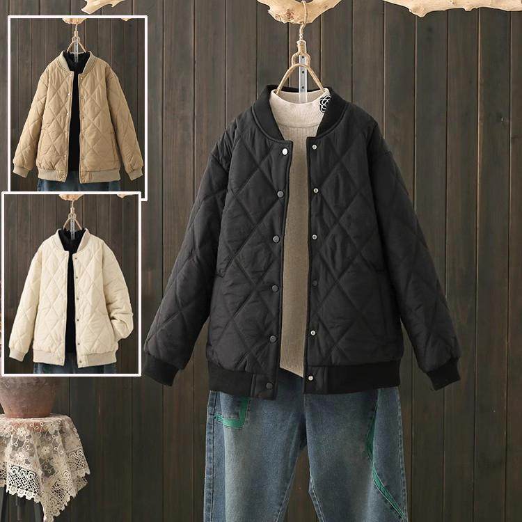 美式复古300斤大码棒球服棉服男冬季棉衣菱格棉袄高级感冬装外套