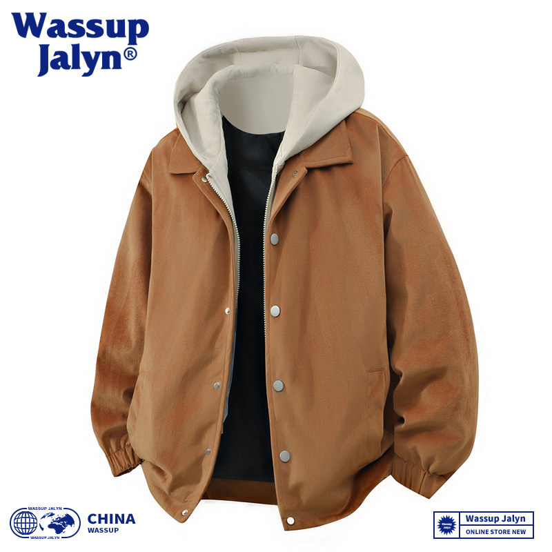 WASSUP JALYN日系假两件外套男士春秋休闲宽松连帽夹克大码棒球服