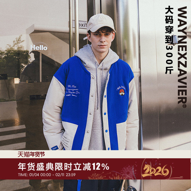 韦恩泽维尔大码棒球服棉服男加厚冬季潮加肥加大蓝色棉衣外套8007
