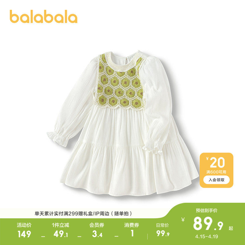 【商场同款】巴拉巴拉童装儿童连衣裙女童2026新款春秋时尚两件套