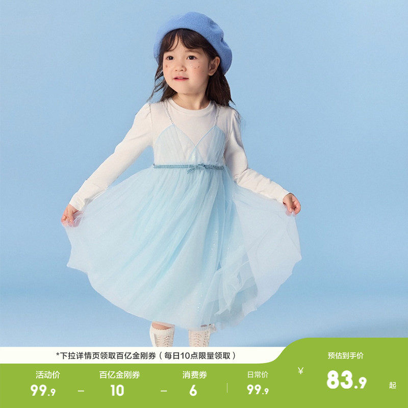 巴拉巴拉童装儿童裙子女童小童宝宝春秋装网纱蛋糕假两件连衣裙潮