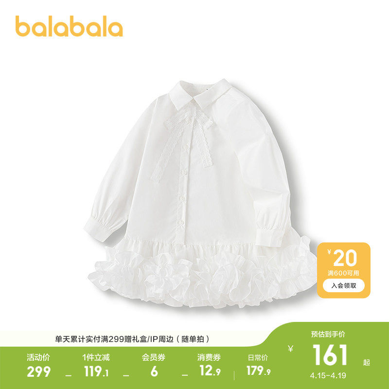 巴拉巴拉童装女童连衣裙纯色衬衫裙2026春秋装新款白裙子内搭演出