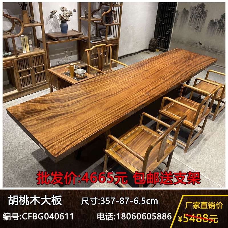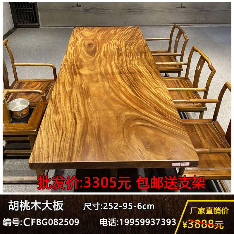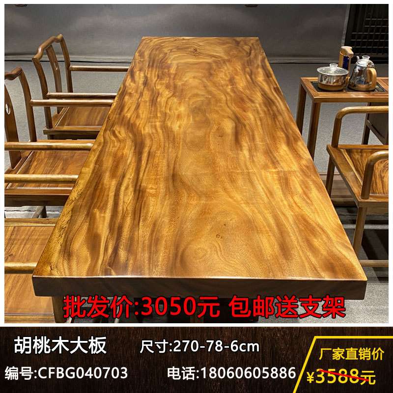 胡桃木实木大板茶桌茶台原木整板办公桌书桌家用餐桌泡茶桌椅组合