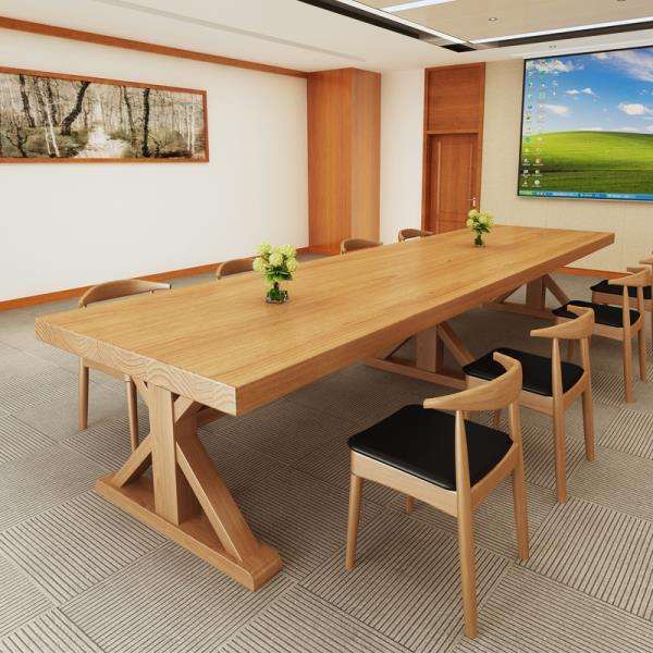 原木大板会议桌办公室洽谈桌办公桌实木书桌简约餐桌电脑桌椅组合