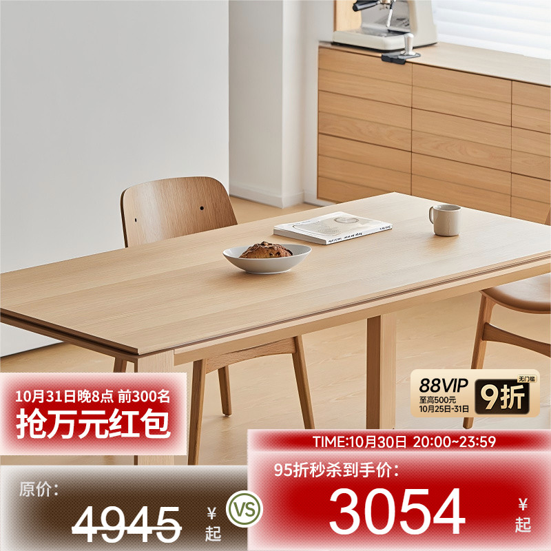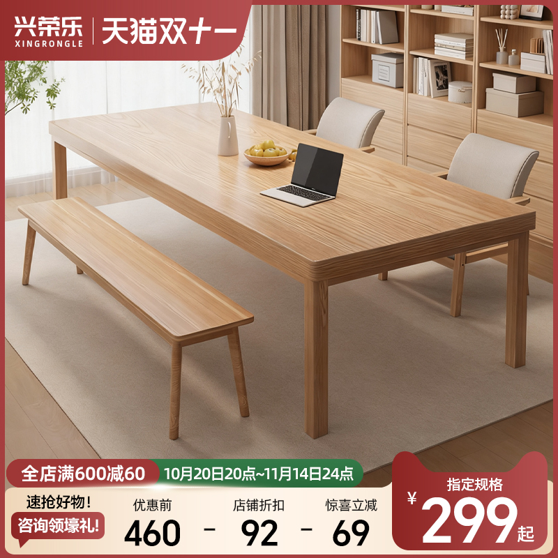 原木风餐桌小户型2025新款家用白橡木皮长方形全实木日式大板书桌