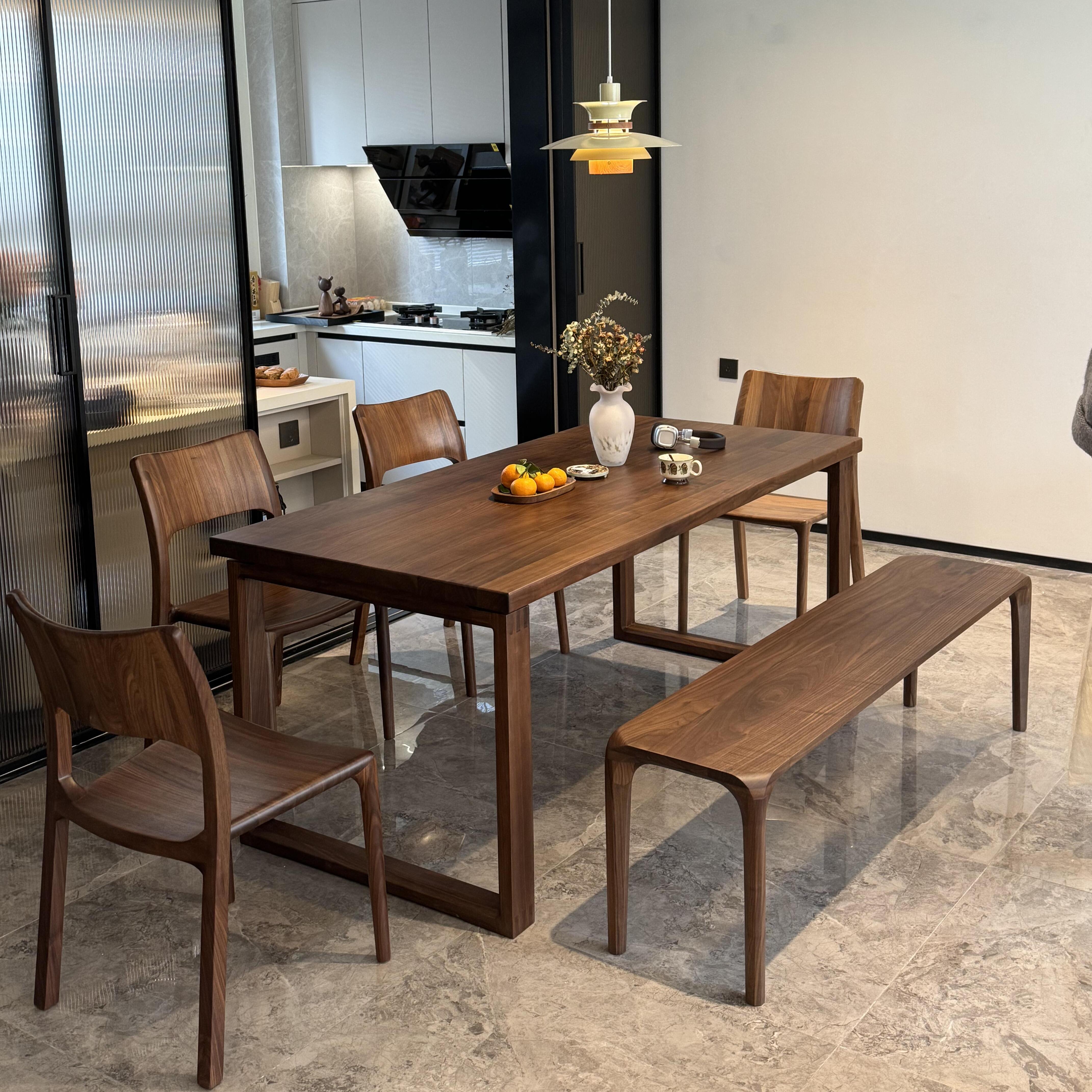 黑胡桃木餐桌北欧原木大板吃饭桌现代日式莫比全实木家用长桌书桌