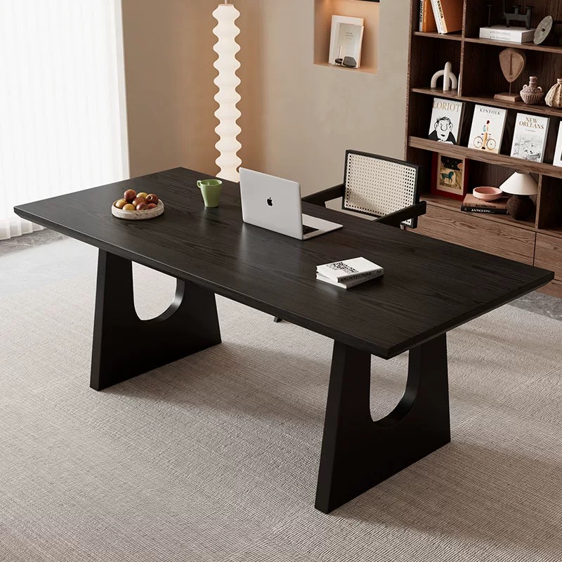 侘寂风实木餐桌黑色白蜡木办公桌家用原木书桌大板桌长方形吃饭桌