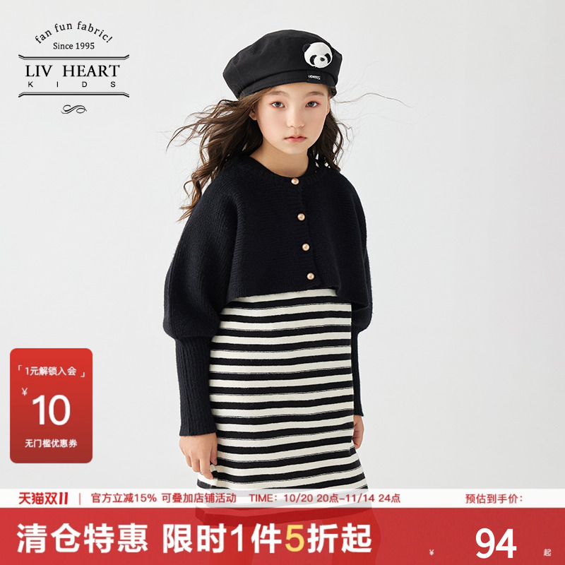 日本LIVHEART女童连衣裙套装裙秋冬新款针织长裙两件套儿童大童