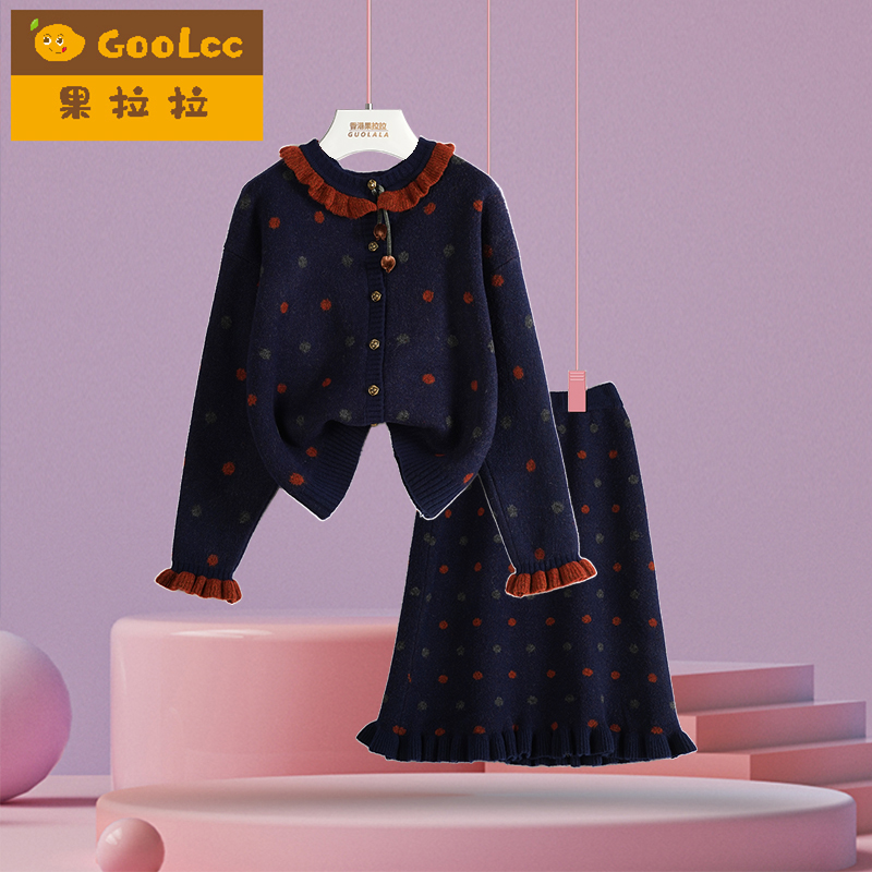 高初中女孩毛衣套装裙子女童秋冬新款洋气针织开衫半身长裙两件套