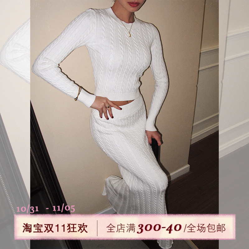 ITSNIKAR 肌理感复古麻花针织套装女秋冬立体经典显瘦长裙两件套