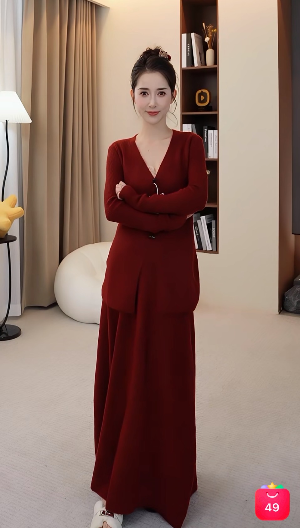 酒红色小香风休闲套装女秋冬2025新款长裙两件套裙装喜婆婆婚宴装