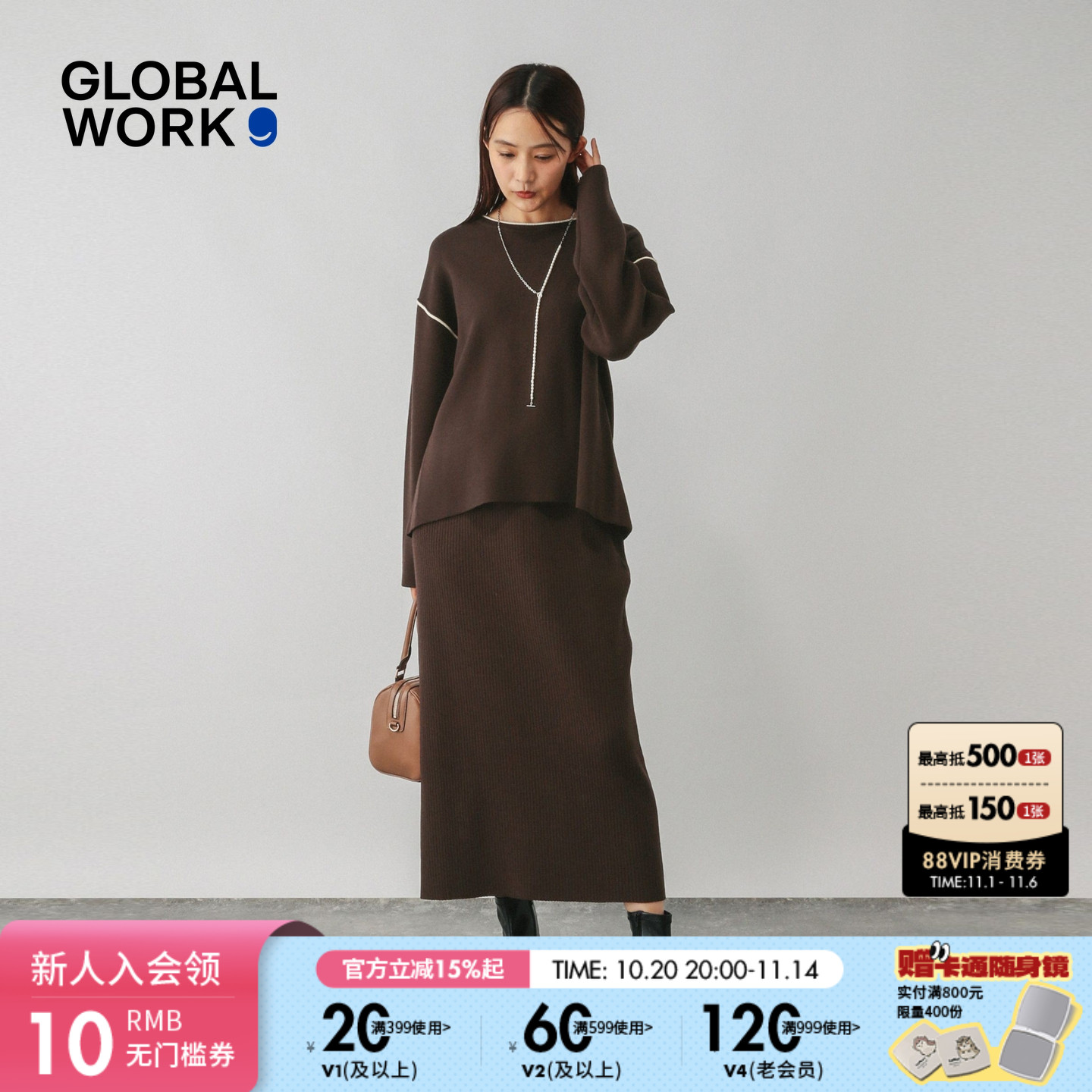 GLOBALWORK套装女2025秋冬新款潮流宽松针织衫长裙两件套580919