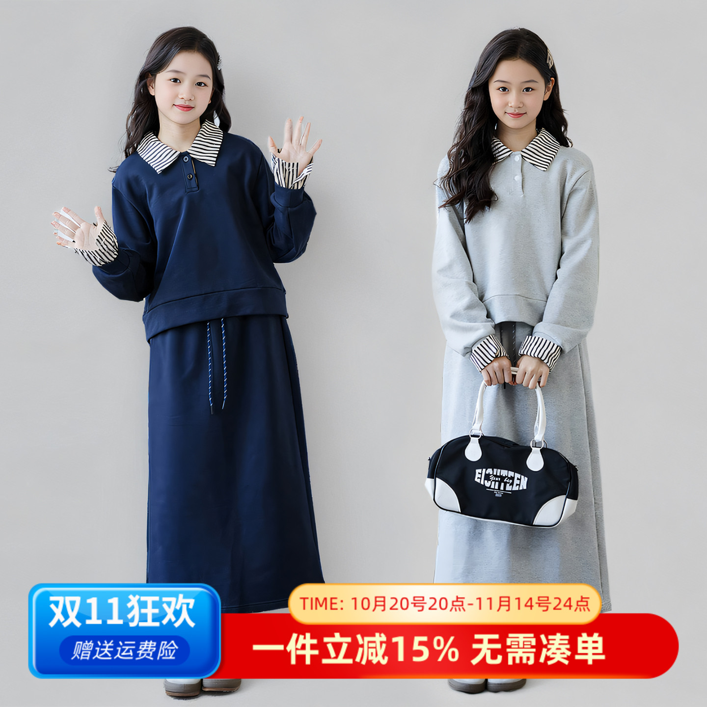 女童韩系卫衣套装裙秋冬季2025新款中大童洋气时髦休闲长裙两件套