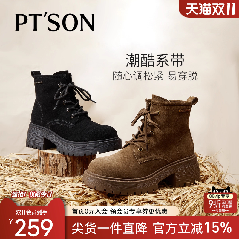 星期六真皮厚底马丁靴女2025秋季新款复古英伦风粗跟短靴短筒靴子