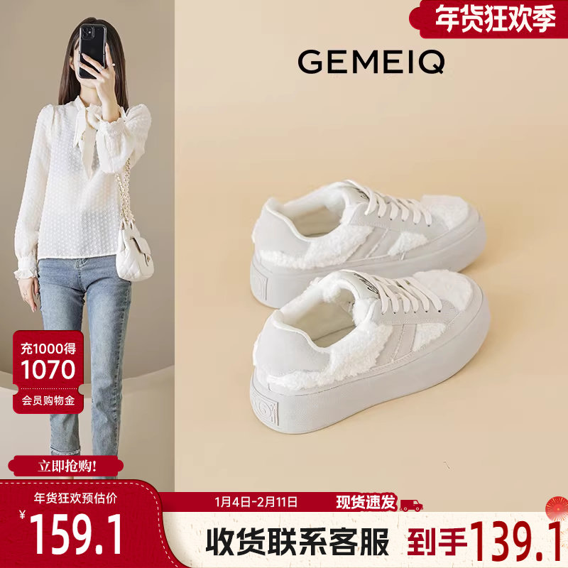 戈美其休闲板鞋女款2024新款秋冬小白鞋百搭加绒学院风厚底德训鞋