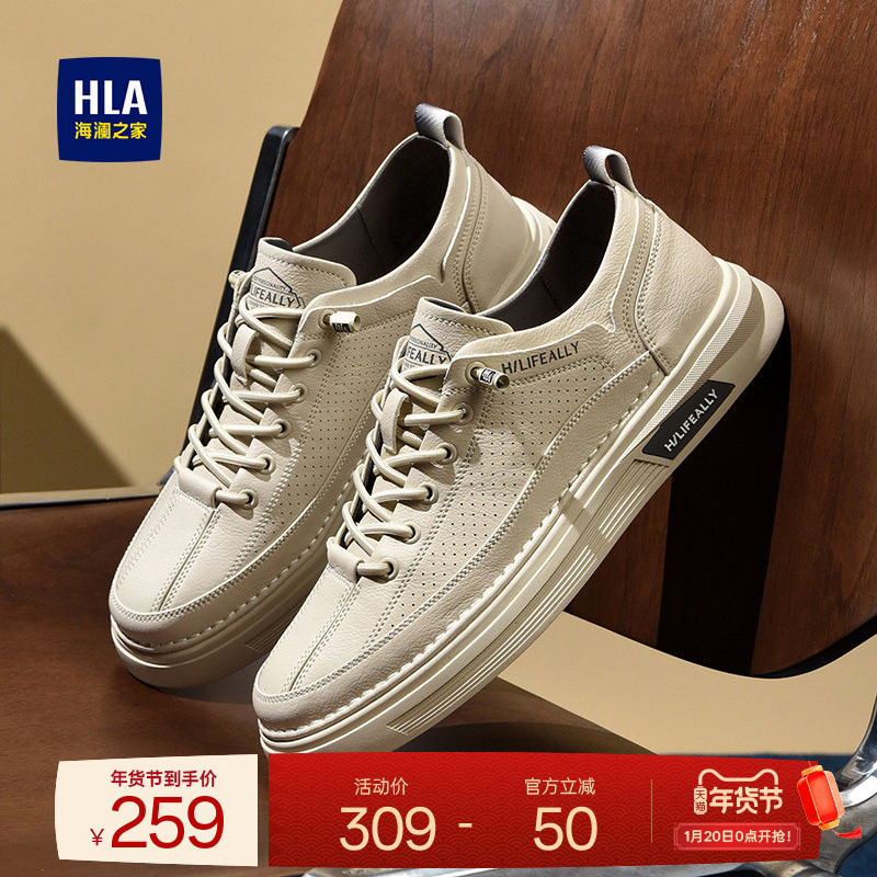 HLA/海澜之家男鞋新款秋冬小白鞋舒适冲孔免系带时尚舒适休闲板鞋