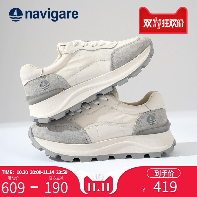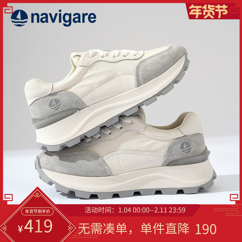 Navigare意大利小帆船老爹鞋女2025新款秋冬小白鞋舒适百搭休闲鞋