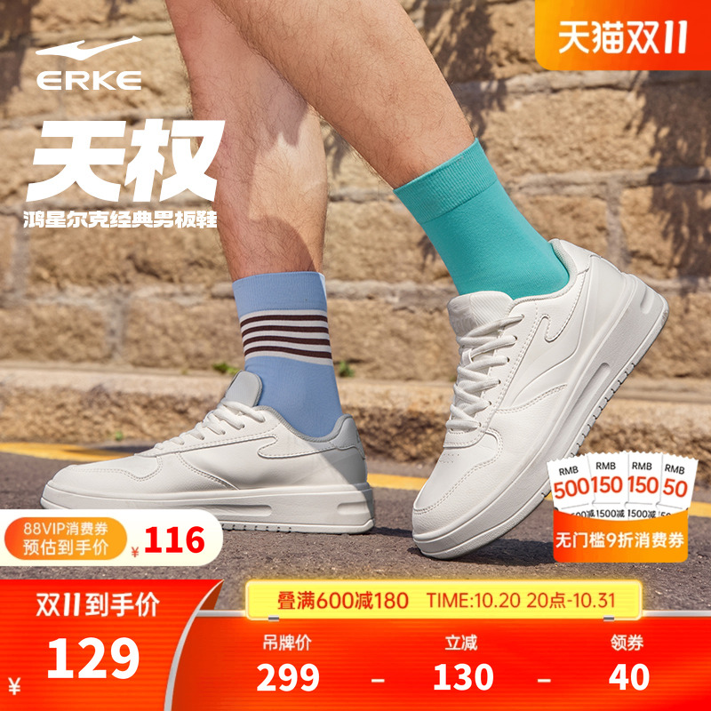 鸿星尔克板鞋男鞋秋冬新款白色休闲鞋子轻便男款运动鞋厚底小白鞋