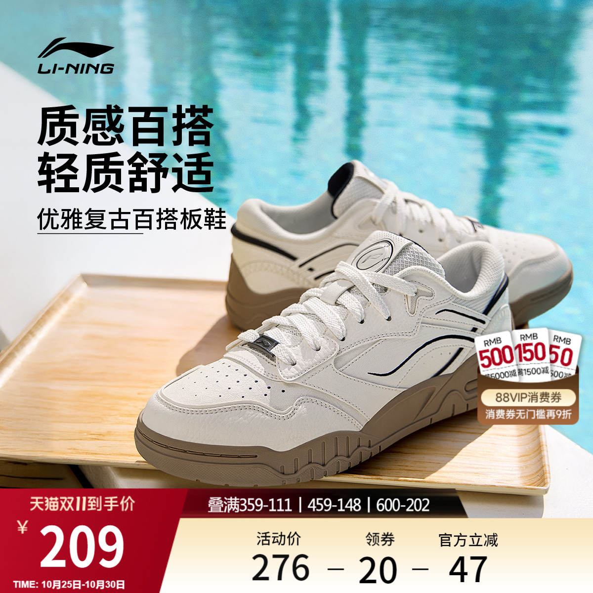 李宁月璃丨板鞋男鞋秋冬新款小白鞋复古休闲鞋轻便软底运动鞋子男