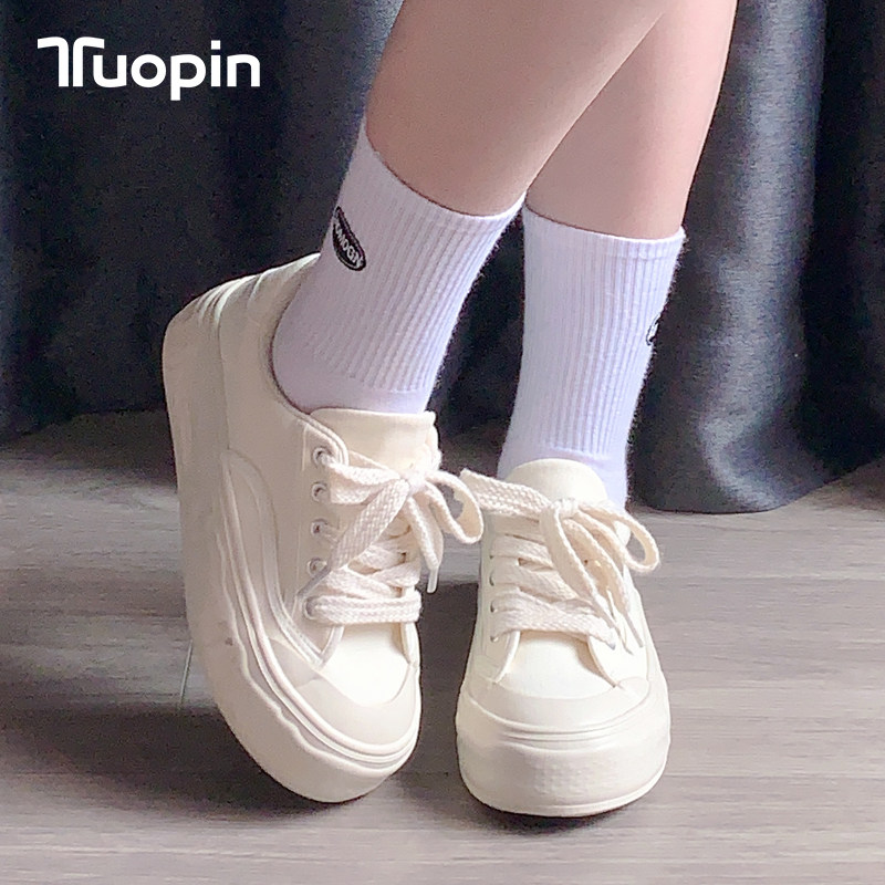 鮀品奶fufu帆布鞋女2025新款秋冬小白鞋增高厚底百搭超火运动板鞋
