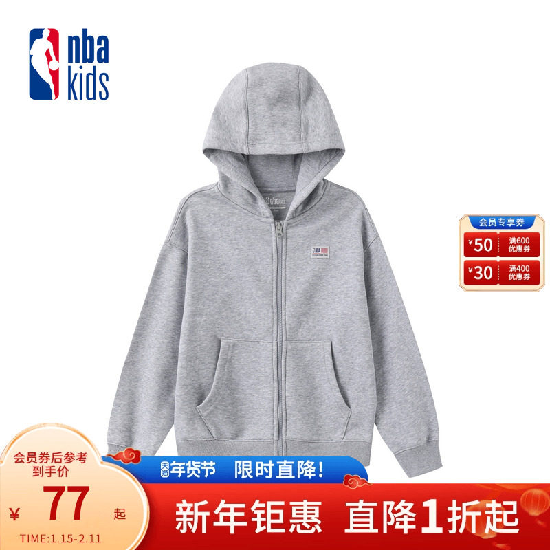 nbakids童装秋冬男童女童连帽外套简约卫衣宽松K243TJ001P