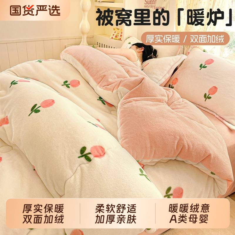 牛奶绒被子冬被加厚保暖加绒棉被被芯全套一整套学生宿舍单人被褥