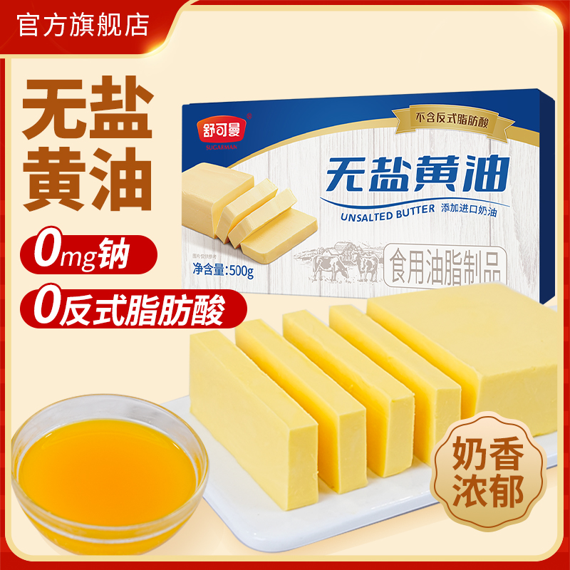 舒可曼无盐黄油500g无盐黄油块家用小包装曲奇奶油面包烘焙原料