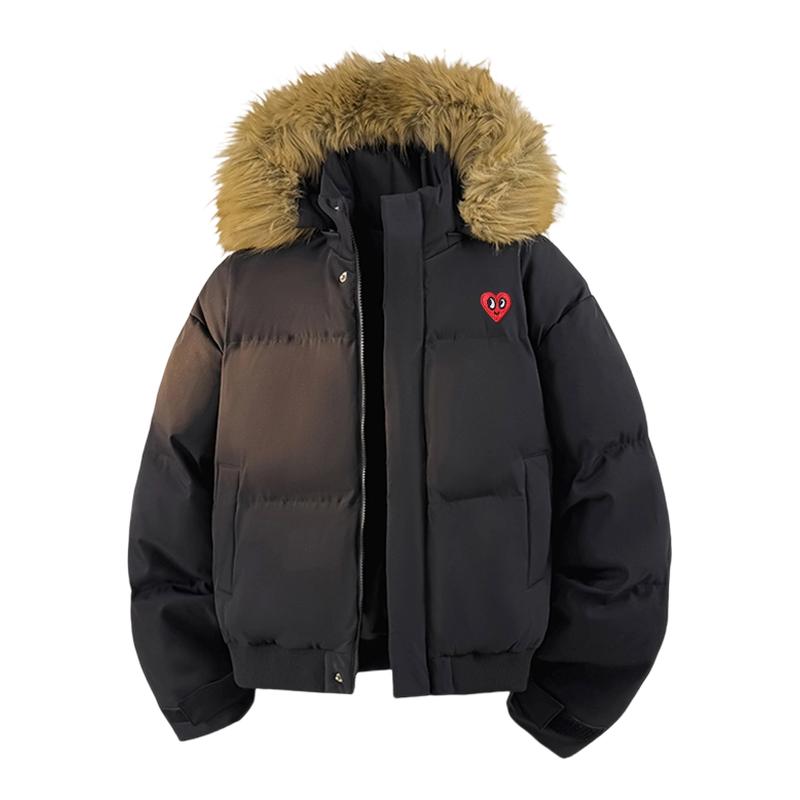 - 大毛领棉衣男中长款