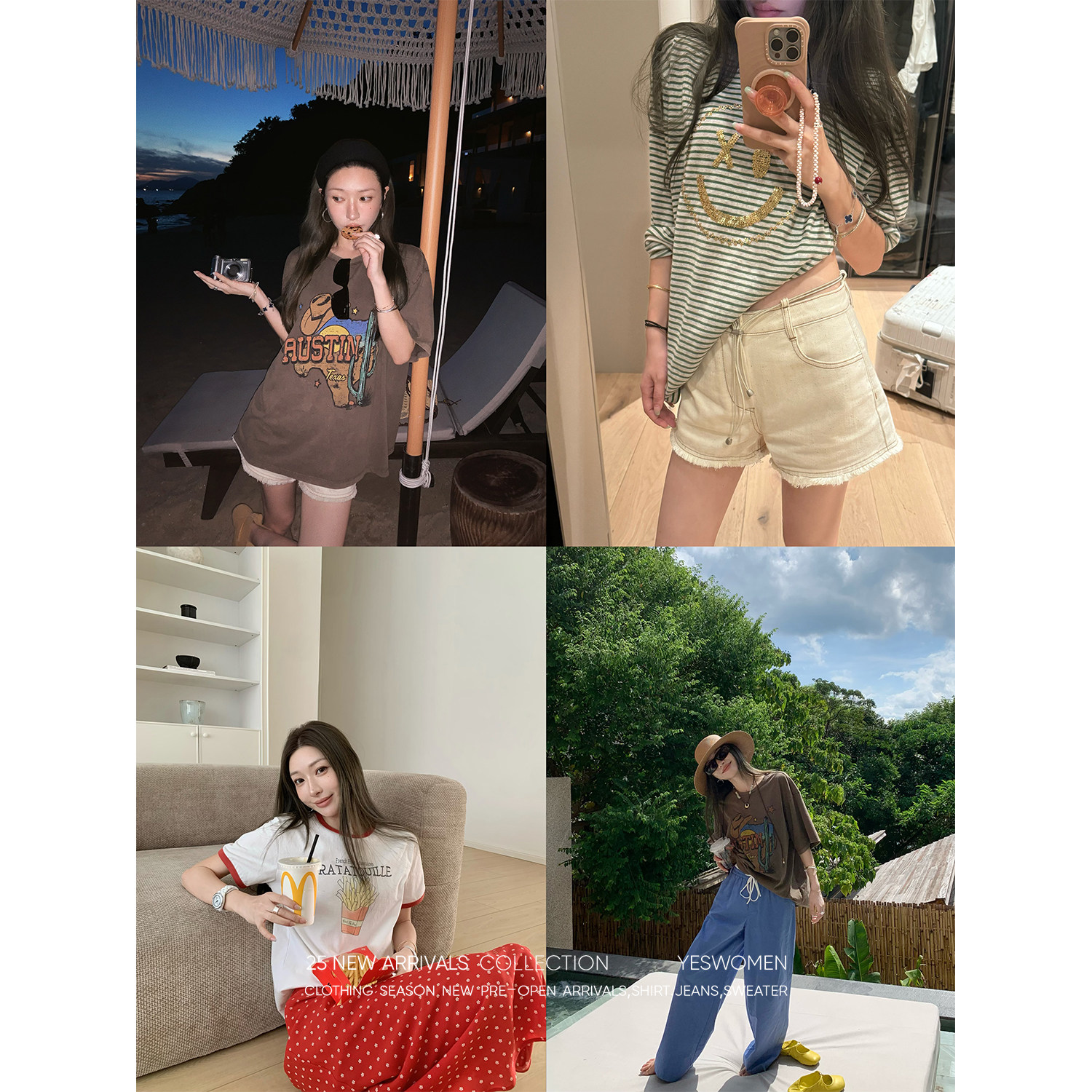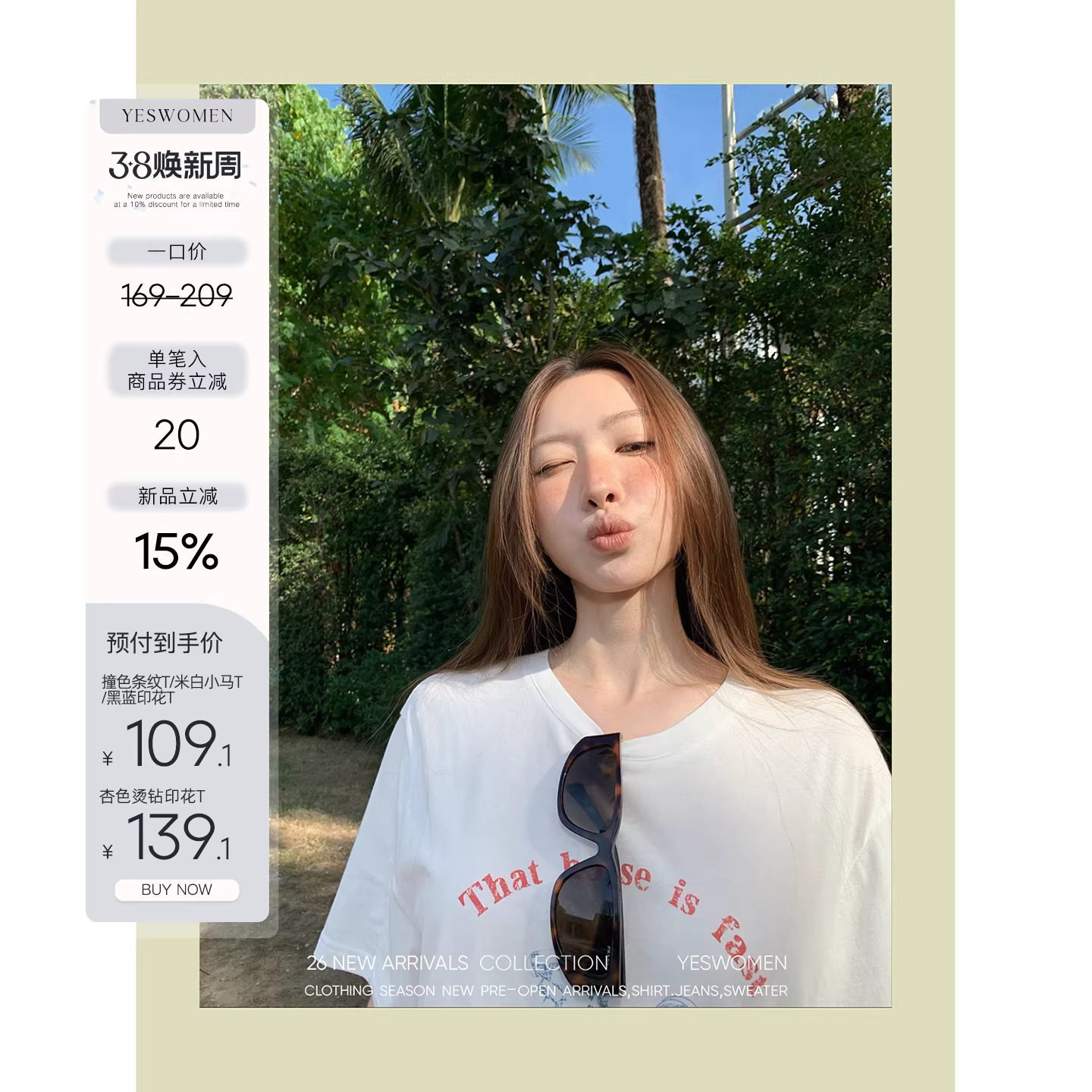 小宜定制 美式旧画报·春夏季新款设计感印花白色短袖T恤女上衣