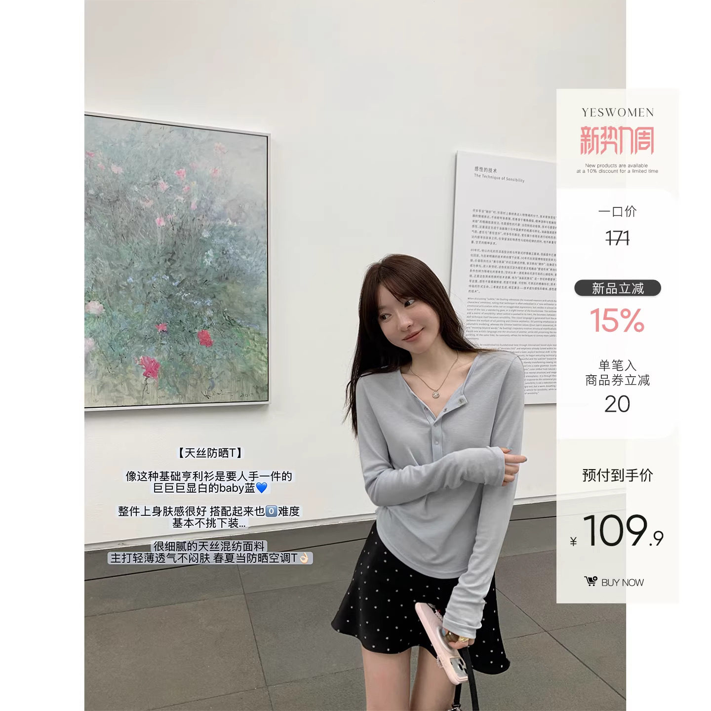 小宜定制 天丝防晒T·春夏季新款薄款蓝色粉色罩衫长袖T恤女上衣