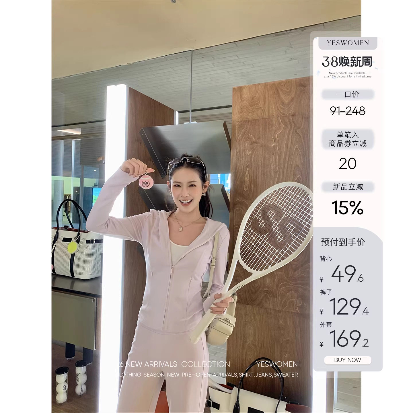 小宜定制 chill白女套装·春季新款lulu风运动休闲连帽卫衣裤子女