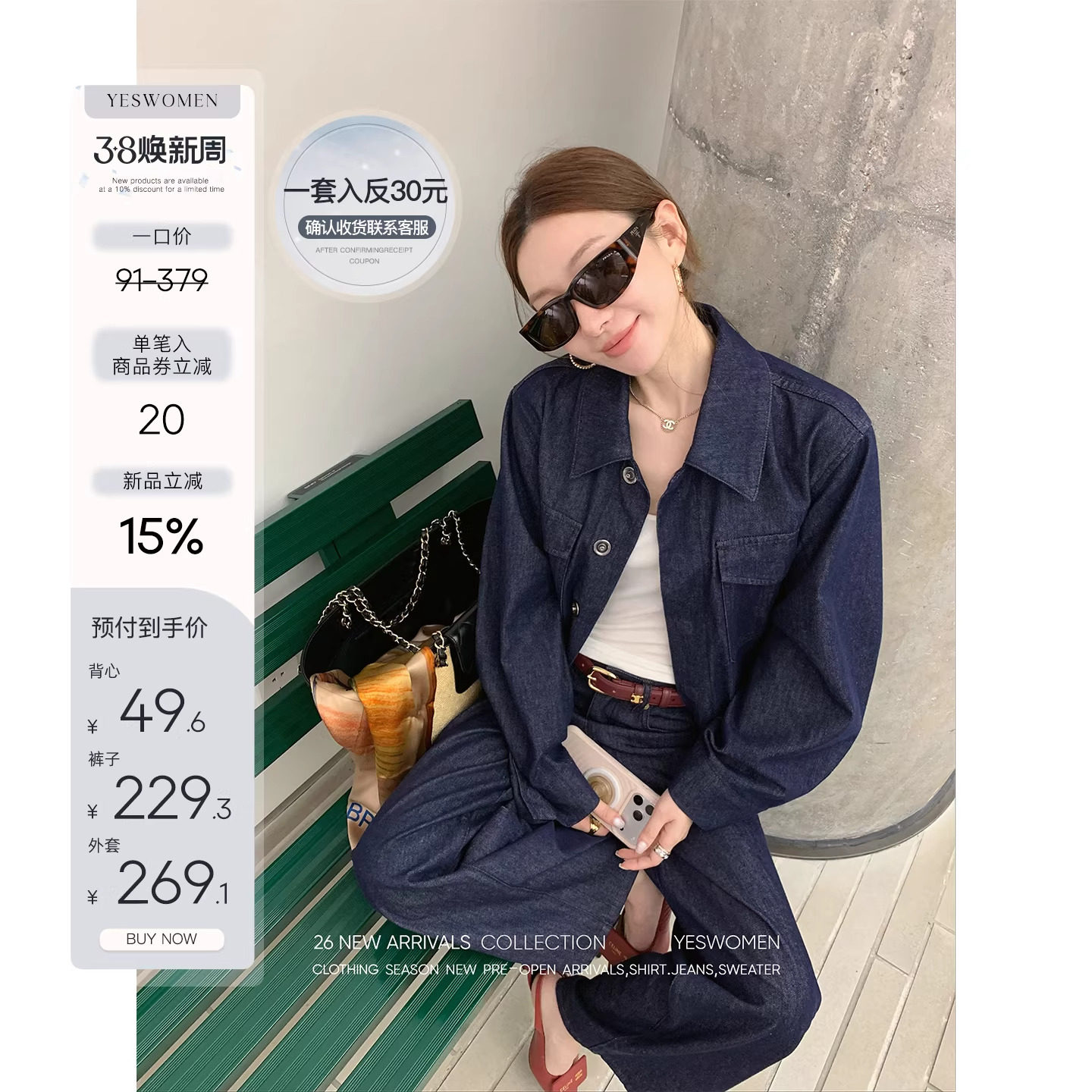 小宜定制 POLO私服衬衫·春夏新款蓝色老钱风休闲宽松长袖衬衫女