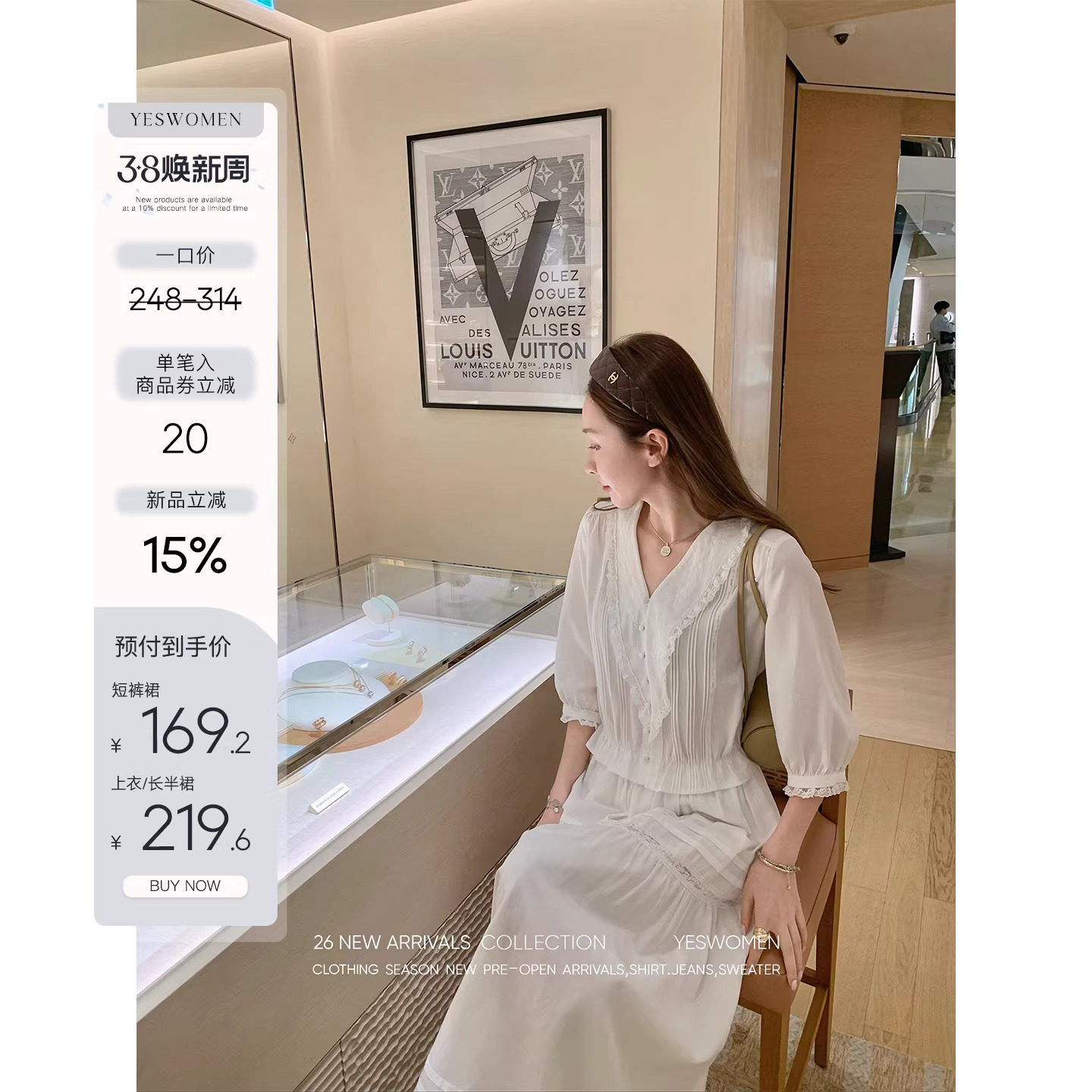 小宜定制 纯白茉莉·春夏季新款法式V领绣花衬衫上衣&花边长裙女