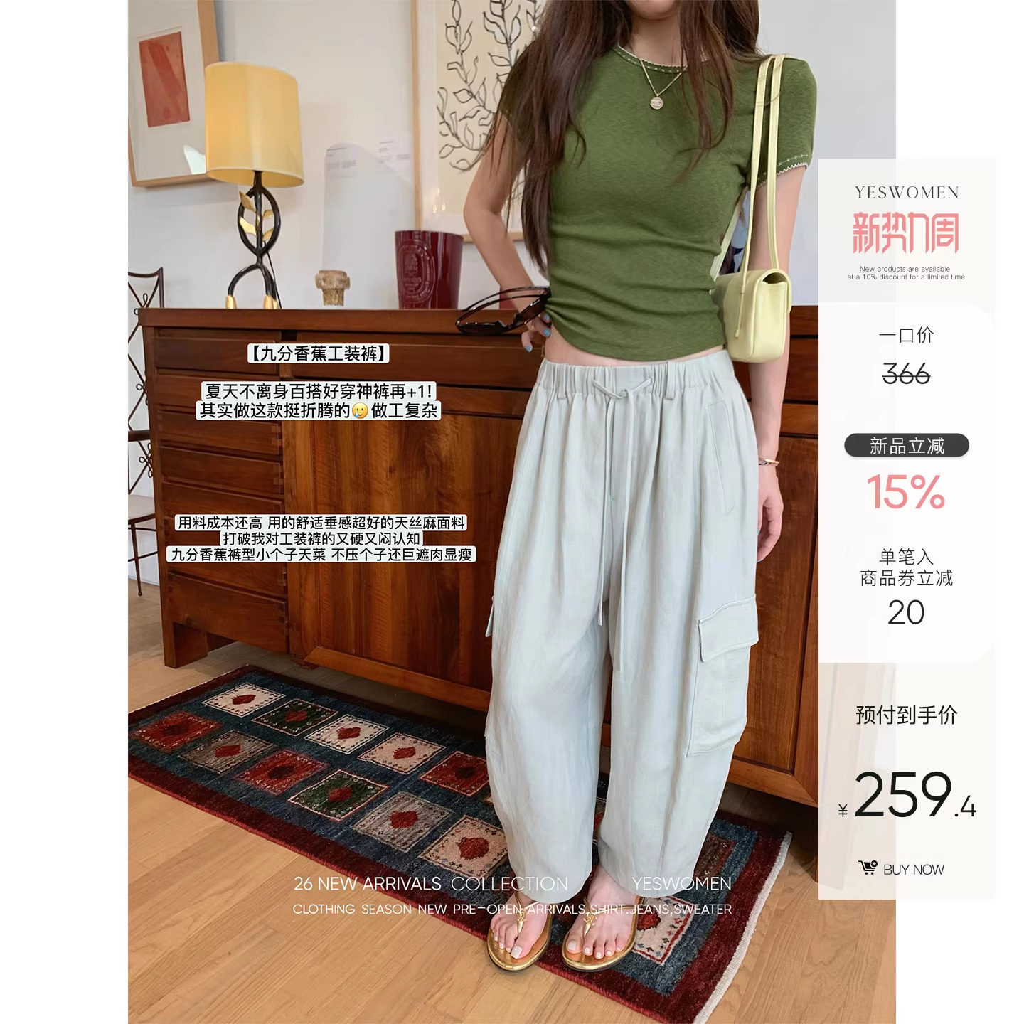 小宜定制 九分香蕉工装裤·夏季新款薄款亚麻裤子弯刀裤休闲裤女