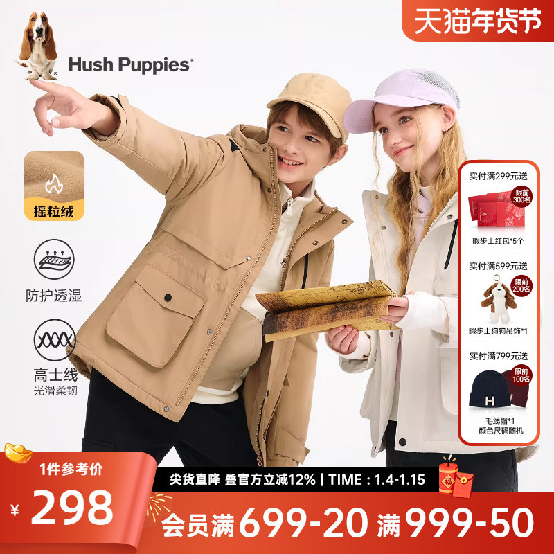 暇步士童装儿童加绒外套2025秋冬新款男童休闲工装风衣女童厚上衣