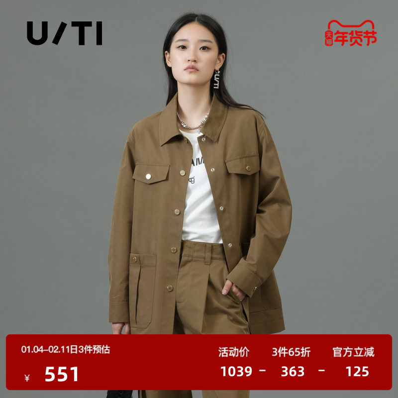 U/TI卡其色休闲工装风衣女巴恩风衬衫款棉质外套尤缇2025春季新款