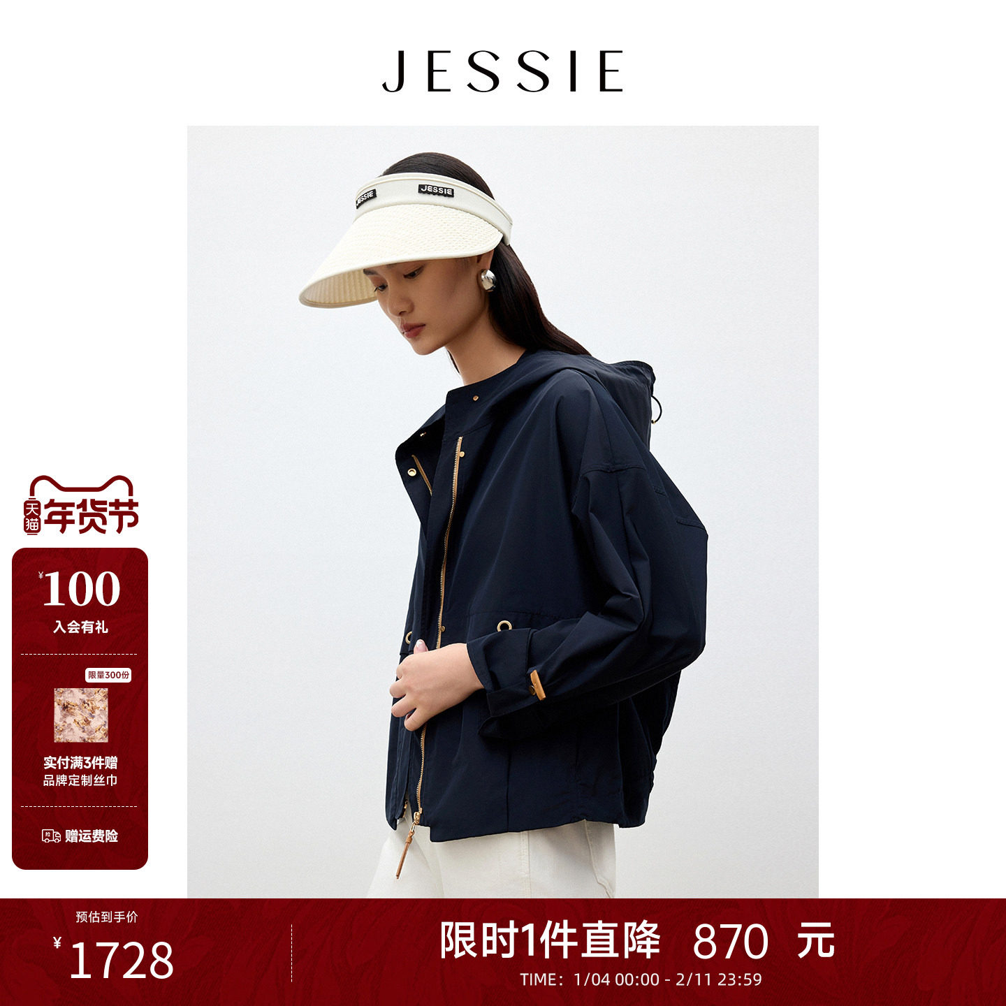 【商场同款】JESSIE2025年秋季新款休闲工装风衣女三醋酸连帽外套