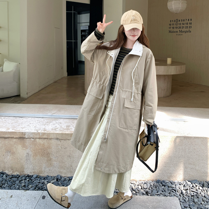 工装风衣女中长款2024年春秋装新款宽松休闲时尚派克服连帽外套潮