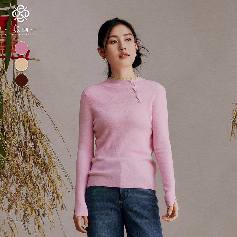 谜底拼接套头针织衫女2023秋款小香风短款修身百搭毛衫233MZ1282